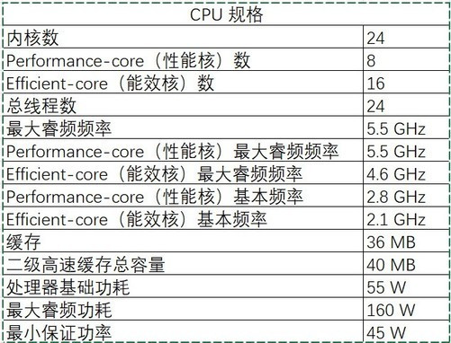 规格方面,英特尔酷睿Ultra9285HX拥有8个性能核和16个能效核,合计共24个核心。由于这一代并不支持超线程技术,所以其为24核心24线程。性能核的最大睿频为5.5GHz,能效核的最大睿频则能够达到4.6GHz,相比以往的能效核,英特尔酷睿Ultra9285HX的能效核在频率方面可以说很给力了。英特尔酷睿Ultra9285HX的缓存也给的挺多,二级高速缓存为40MB。英特尔酷睿Ultra9285HX的基础功耗为55W,最大睿频功耗能达到160W。